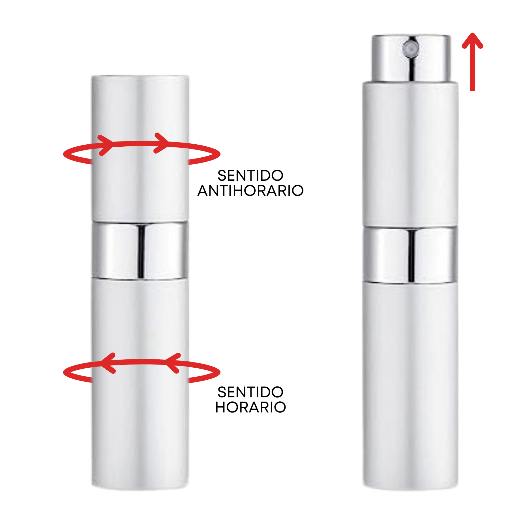 atomizador perfume plateado, frasco recargable viaje, atomizador portátil Ecuador, refill perfume hombre mujer, frasco spray silver.