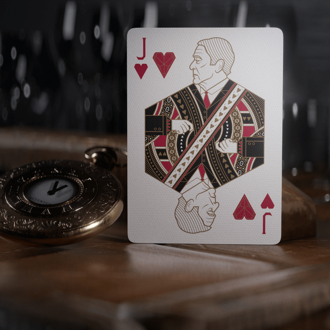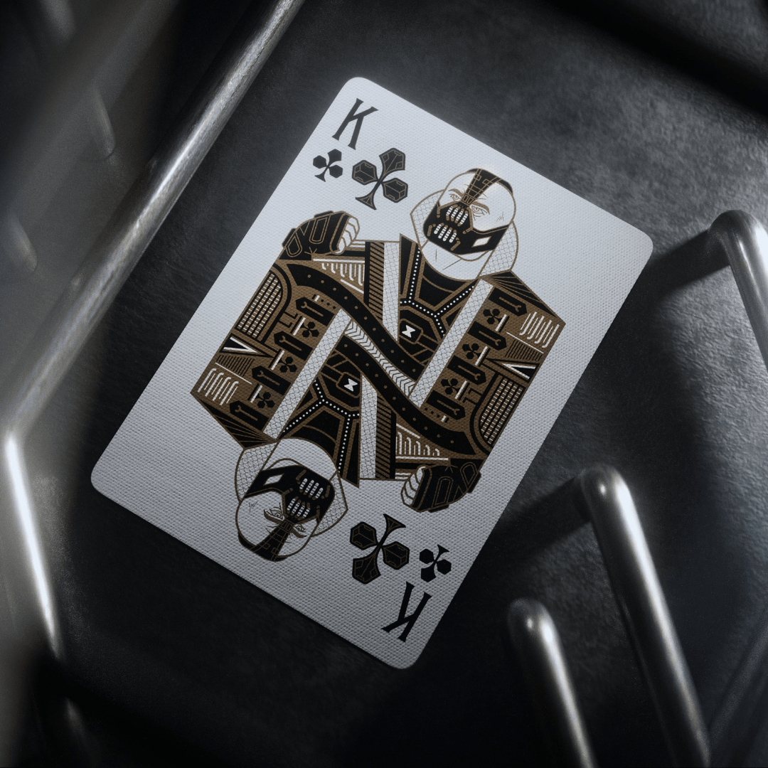 Cada aspecto de los naipes de la trilogía del Caballero Oscuro se hizo desde cero: ¡incluye trajes personalizados, diseños de personajes, ases, el diseño de la espalda y todo lo demás! Si miras de cerca, notarás varios huevos de Pascua que satisfarán incluso al mayor fan.